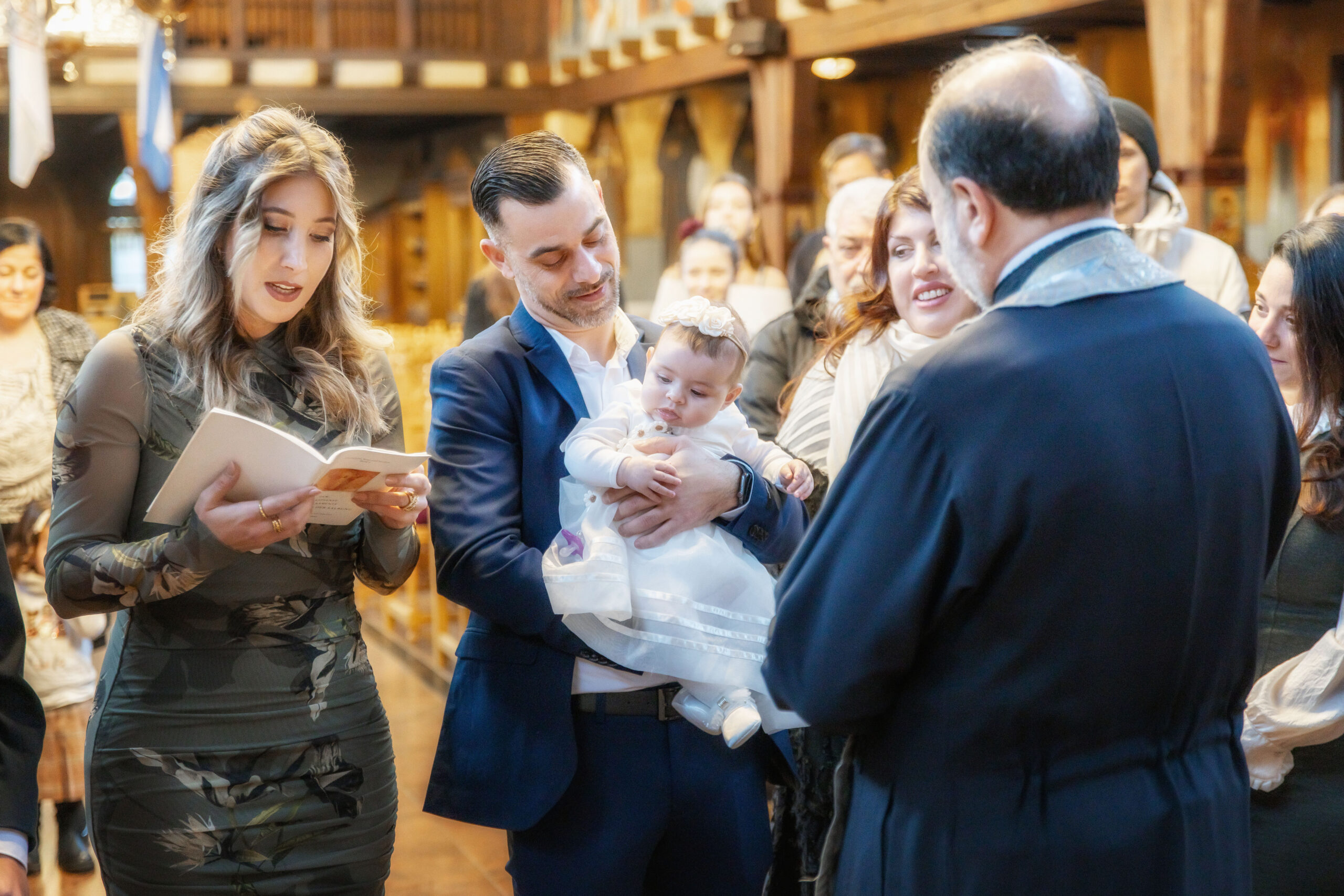 Auch für Sofia haben wir selbstverständlich, wie bei Taufen generell gehandhabt, alle Phasen dieses besonderen Anlasses auf Bildern für immer verewigt. Hierzu gehörten zu Beginn das Glaubensbekenntnis der Eltern und der Taufpaten, das Ausziehen für die eigentliche Taufe, das Einölen sowie das dreimalige Untertauchen im Taufbecken. Auch die Firmung – die Myronsalbung und das Ankleiden von Sofia nach dieser wurde fotografisch begleitet. Am Ende folgten die Gratulationen sowie die Familien- und Gruppenfotos, die zum Teil auch vor der Kirche aufgenommen wurden.