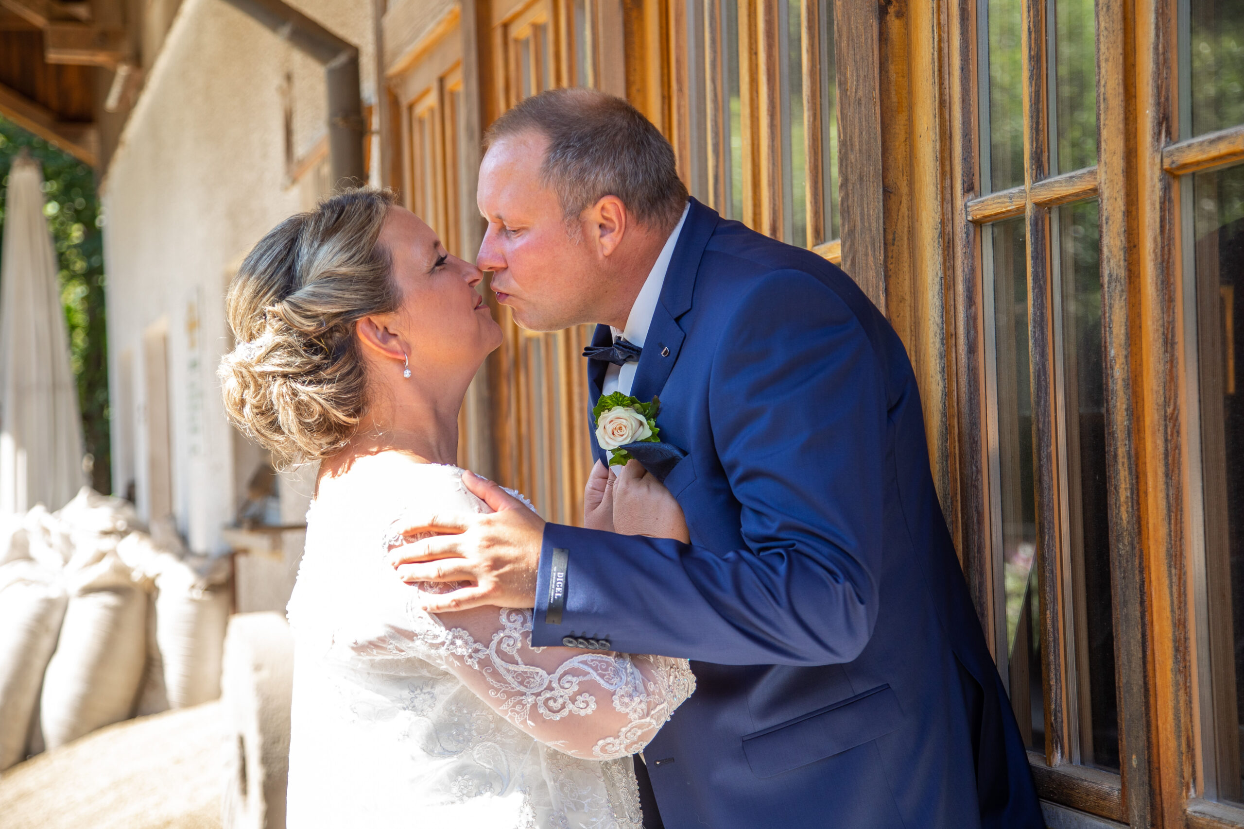 Da bot es sich an, die Brautpaarfotos direkt an der Kapfenhardter Mühle vor die Trauung zu legen. Die Location vor Ort ist unglaublich schön und bietet unterschiedlichste kreative Möglichkeiten zur Anfertigung wertvoller Aufnahmen, die das Brautpaar immer wieder zurück an deren Traumtag erinnert.
