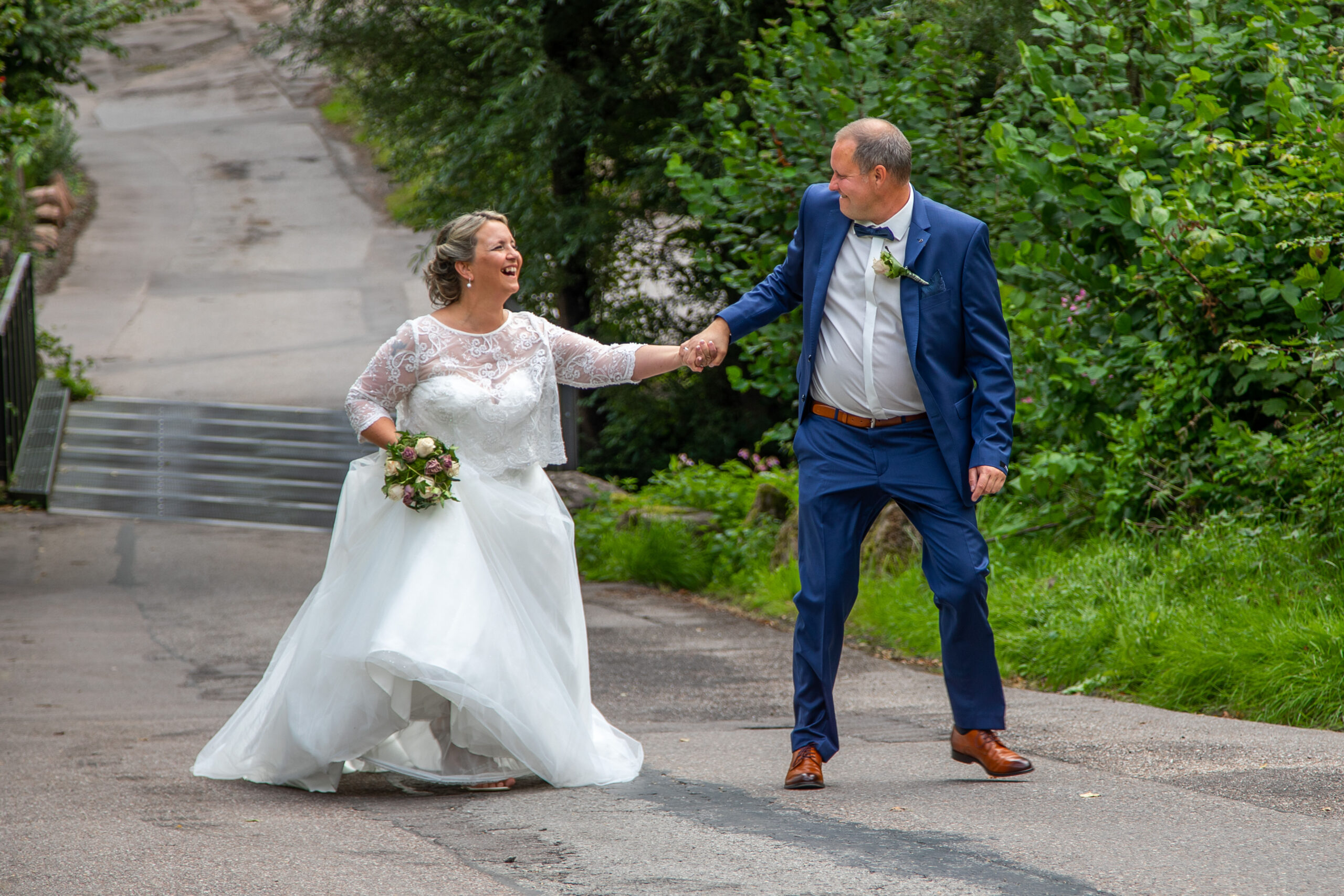 Dass das Ringhotel Mönch in Unterreichenbach – also quasi direkt neben der Kapfenhardter Mühle – über einen Raum verfügt, der für standesamtliche Trauungen genutzt werden kann, wussten wir bis zu diesem Zeitpunkt noch nicht. Doch das sollte nicht die einzigste Überraschung an dem Tag für das Brautpaar und uns als Fotografen sein.